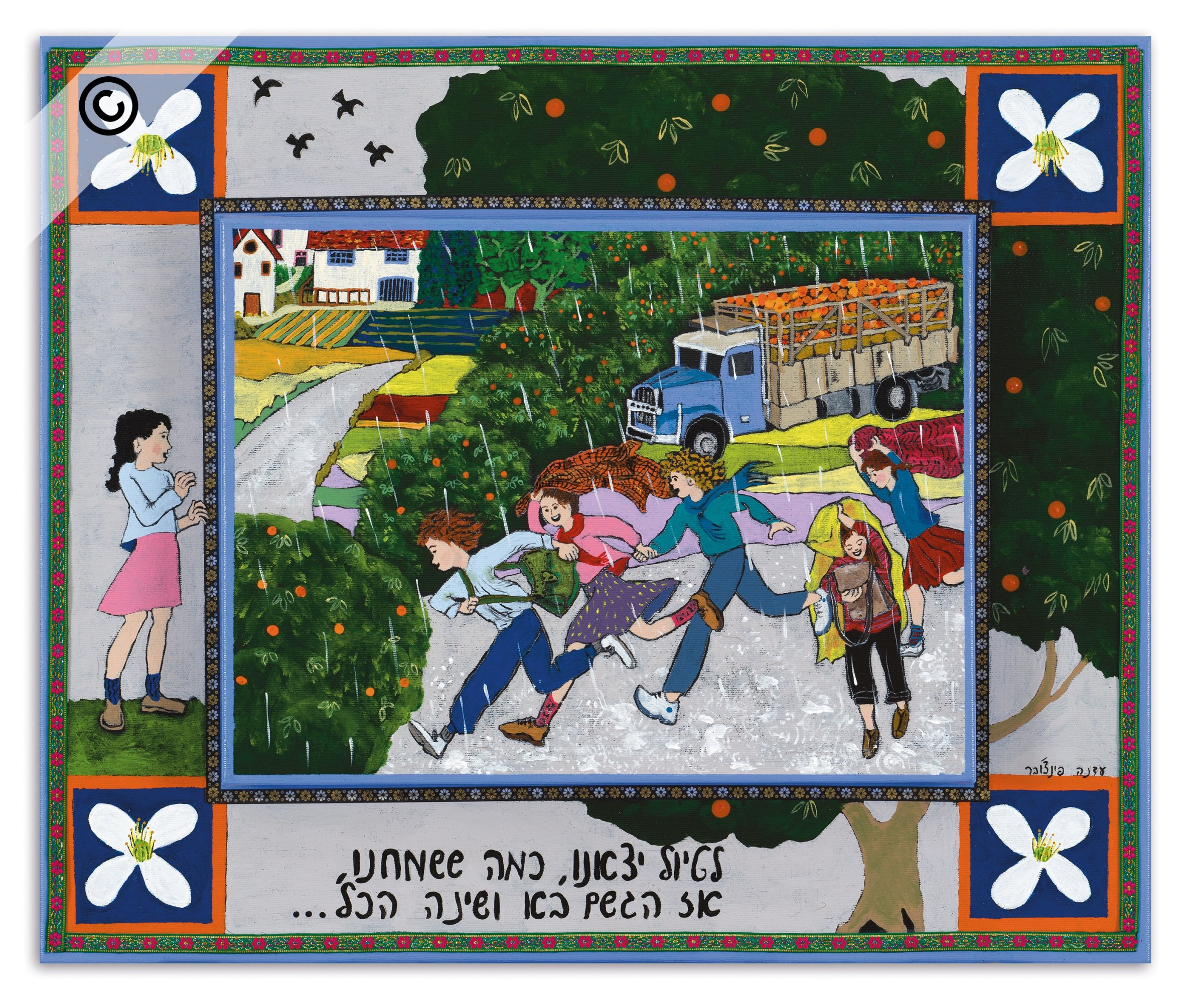 התשוקה העזה שפרצה מתוכי כשהחלטתי להתמסר לציור הנאיבי ממלאת אותי בשמחה ומשמשת כמגן אל מול מציאות קשה המתקיימת בשנים אלה בארצנו.