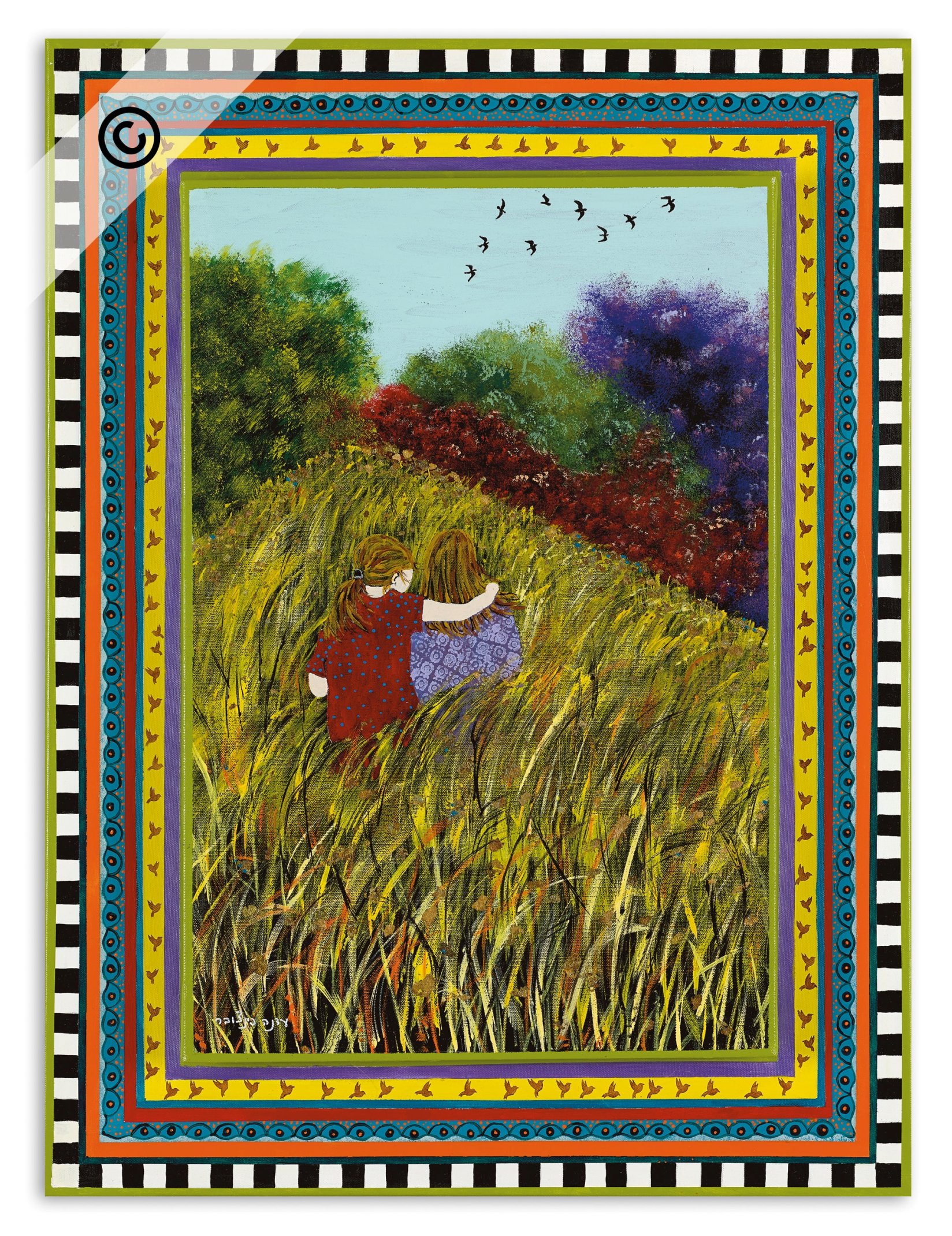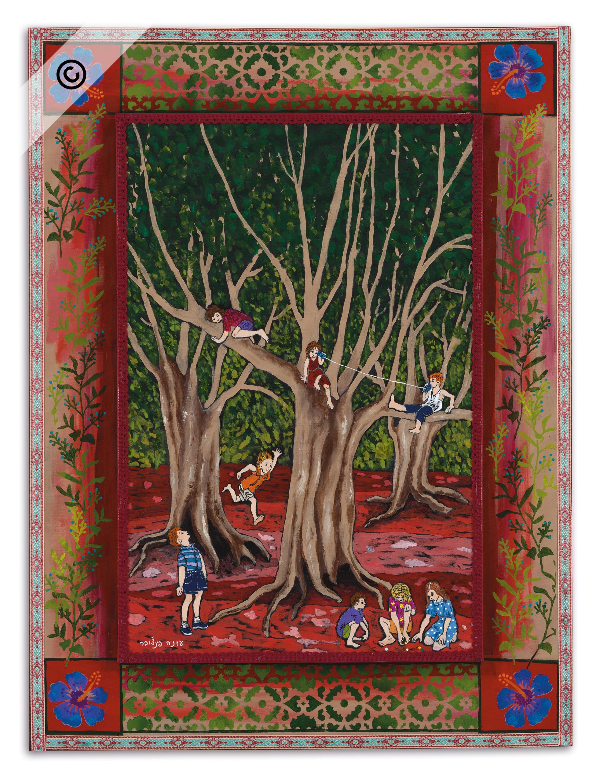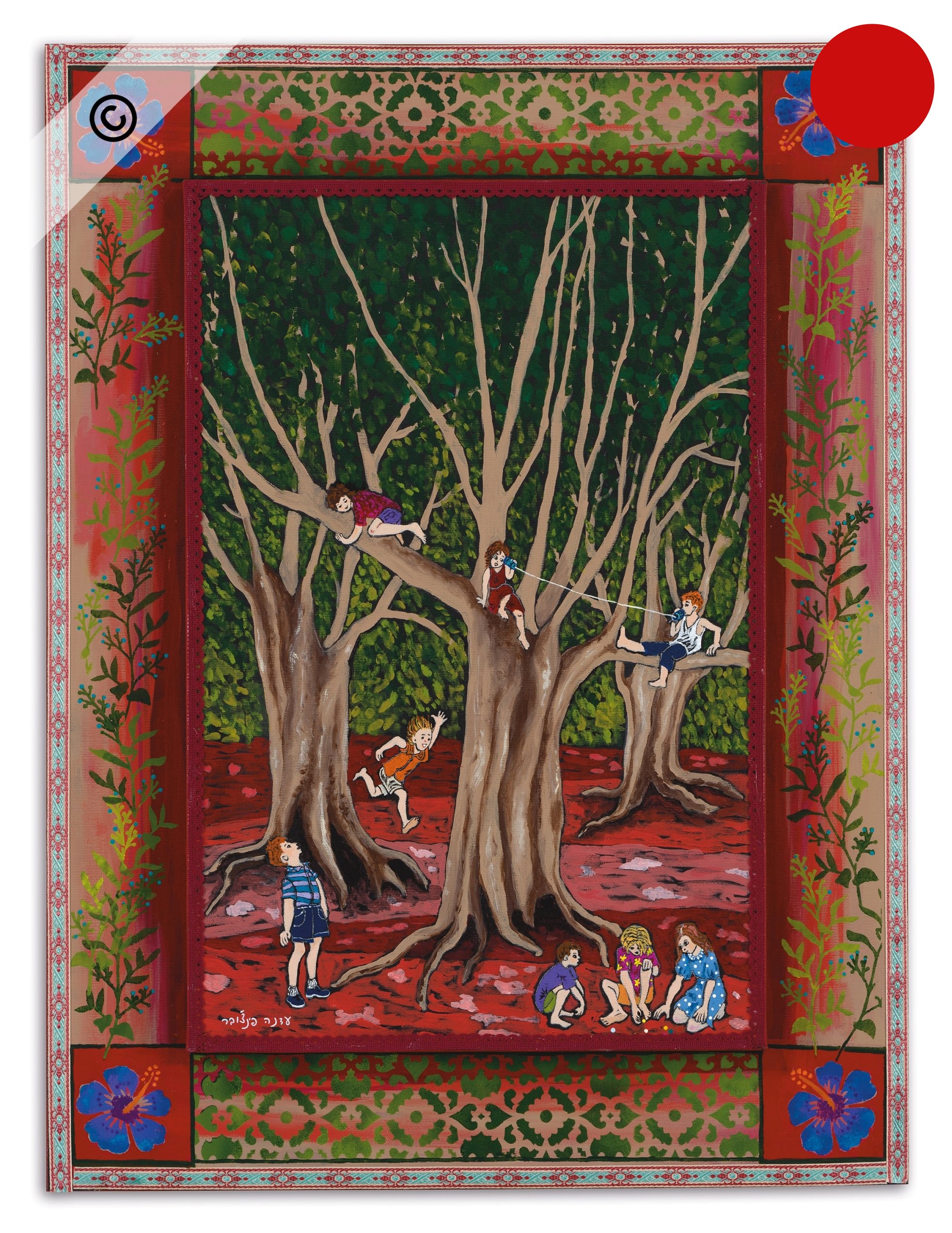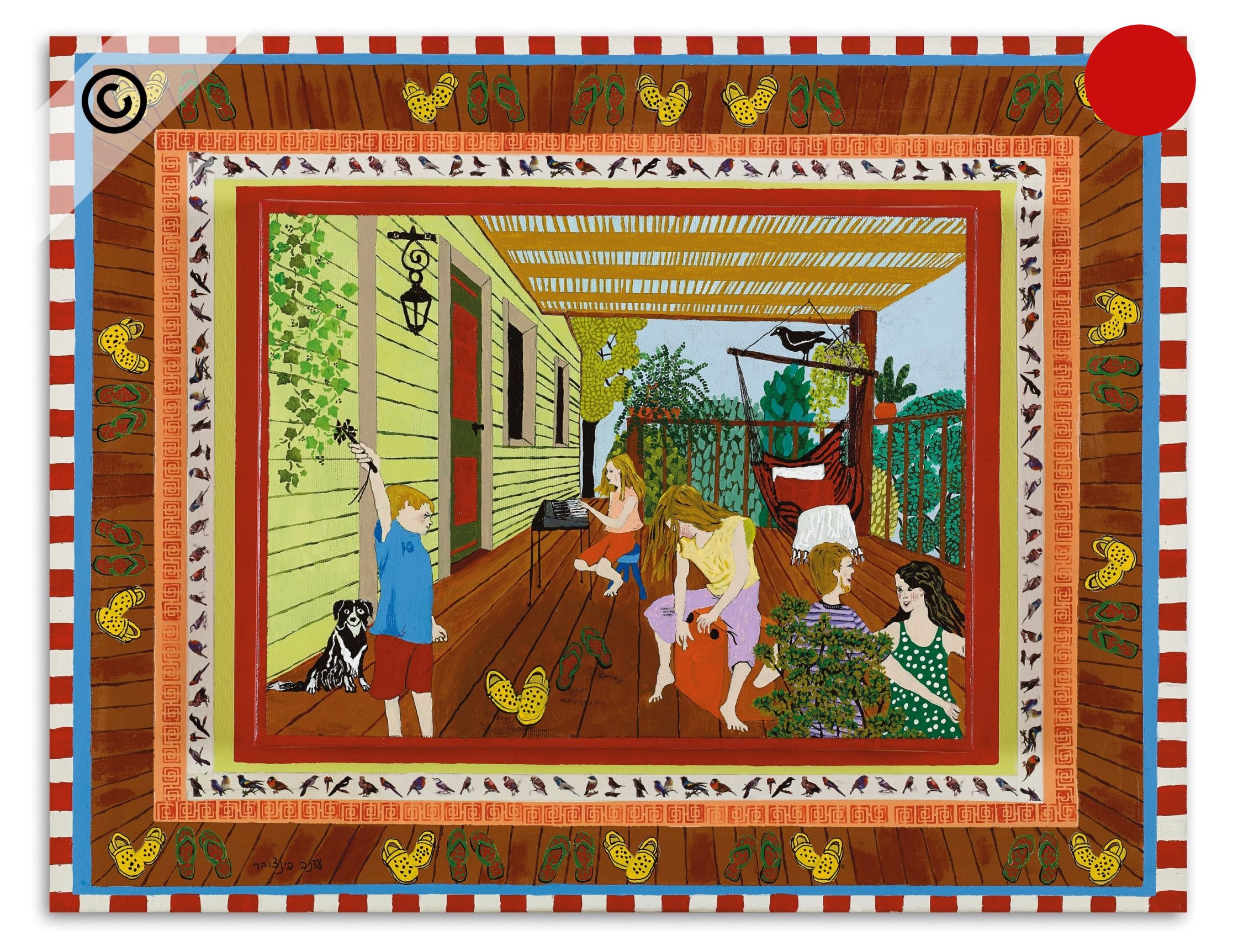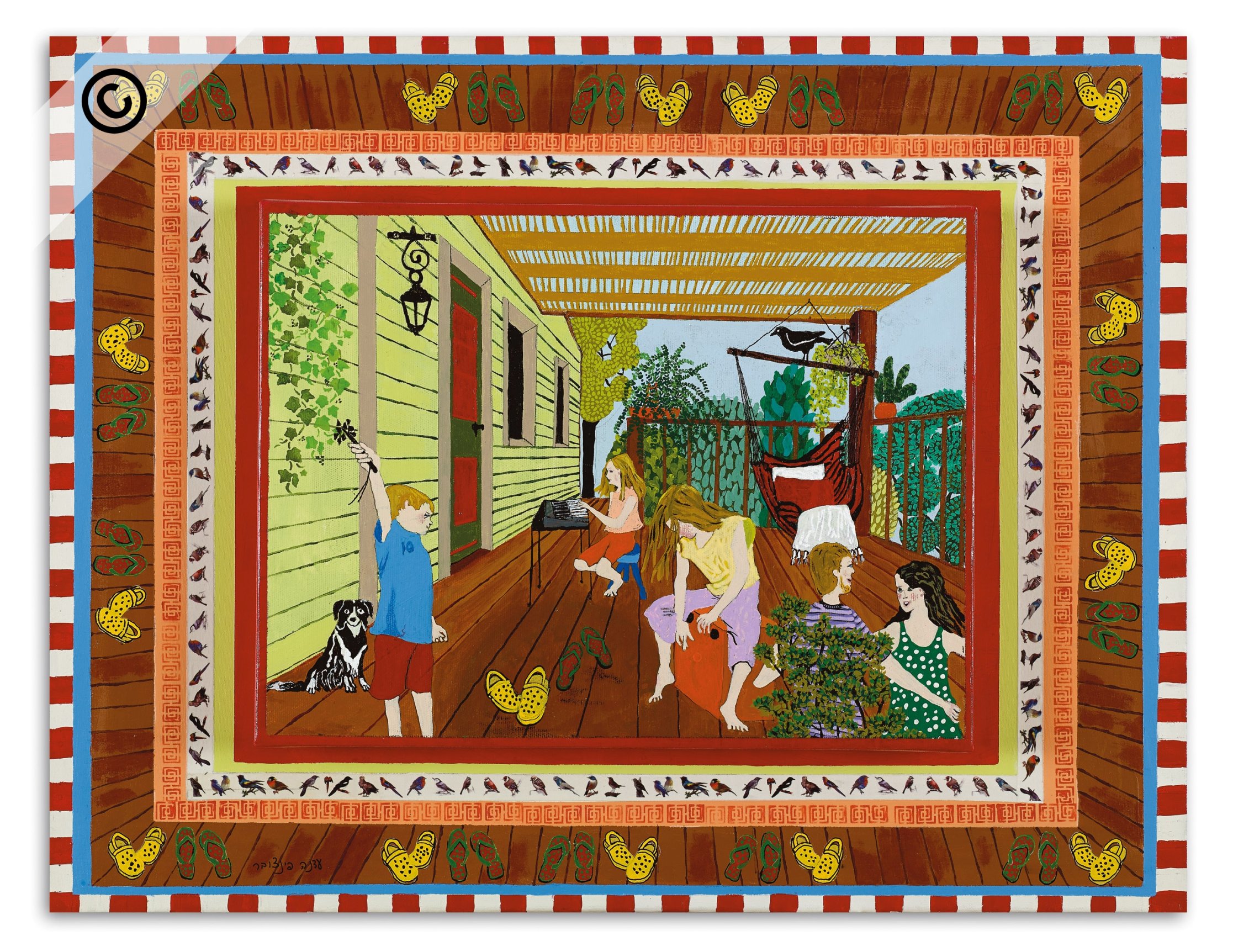 Many of my paintings reflect childhood memories, and others depict my present life and surroundings. Each painting tells a story, and its intricate details are evidence of its complexities and depth. In my paintings, I tend to idealize situations and events. I am drawn to beauty and unsophisticated description, sometimes including implicit humor, that touches on human behaviors and familiar and universal situations. Many paintings express my connection to the earth and nature, and almost always include one or more characters interacting with their surroundings.